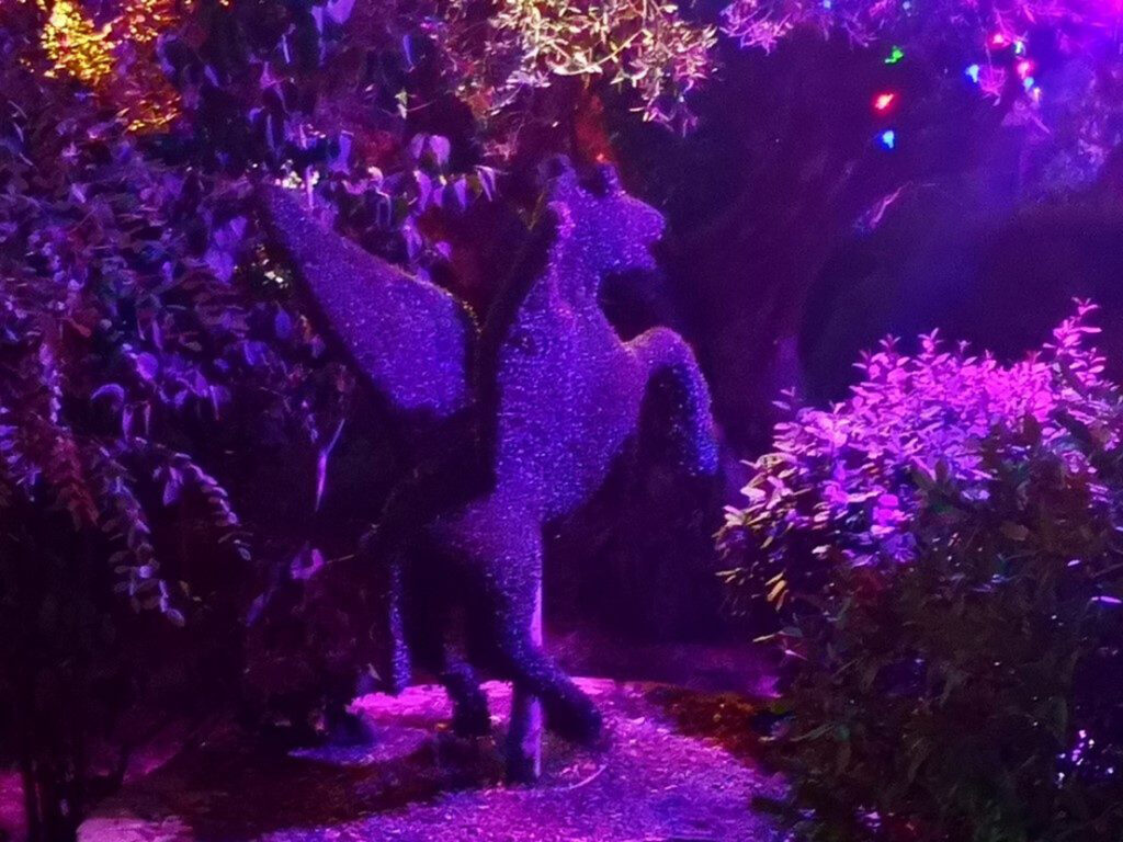 Pero cuando el sol se oculta, el parque ofrece su faceta más fascinante: El Bosque Iluminado. Millones de luces de colores transforman los senderos, mientras las esculturas cobran vida en un espectáculo visual acompañado por colores, brillo y atmósferas de cuento. En noches selectas, los visitantes pueden explorar con linternas de colores las rutas, lo que añade un fuerte componente lúdico y sensorial a la aventura.