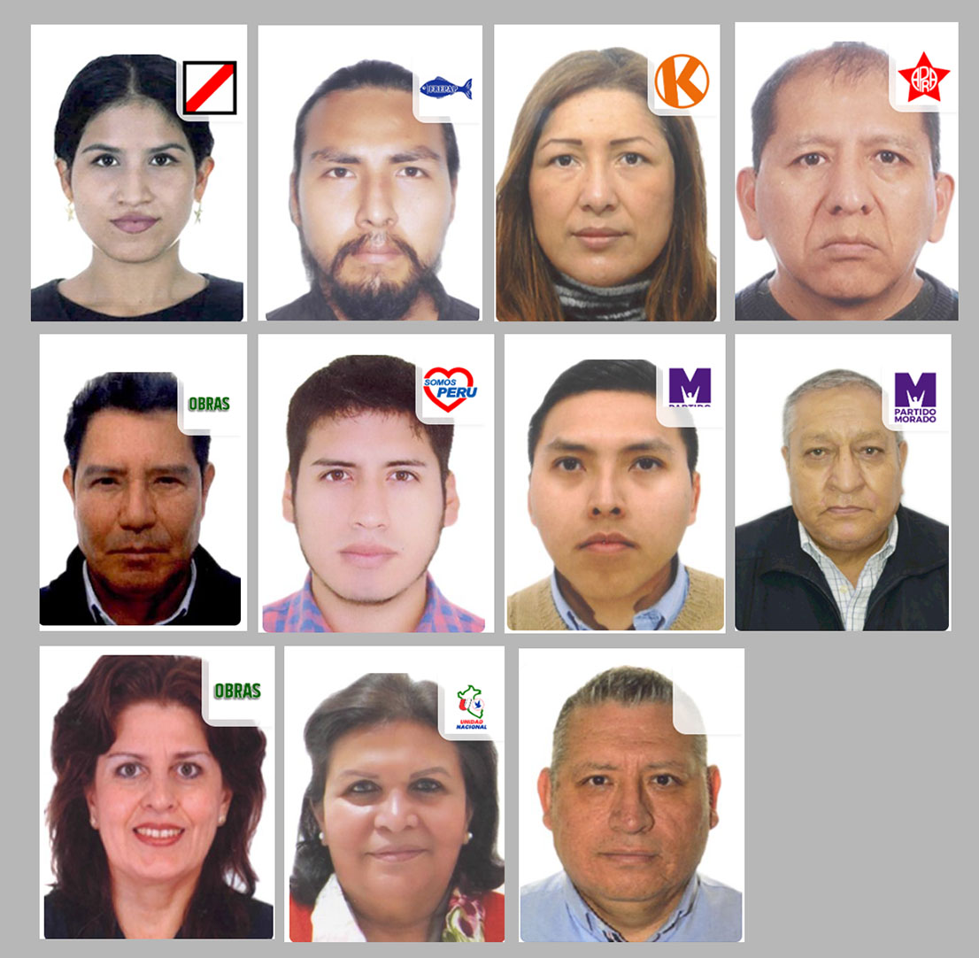 | Partido Morado | Juan Ricaldes Loayza | Enfermero. | No registra trabajo actual. |