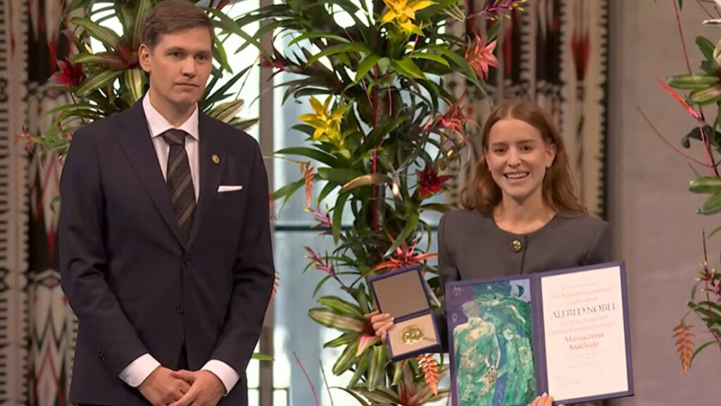 Ana Corina Sosa, hija de la opositora María Corina Machado, ha recibido este miércoles en su nombre el Premio Nobel de la Paz 2025,...