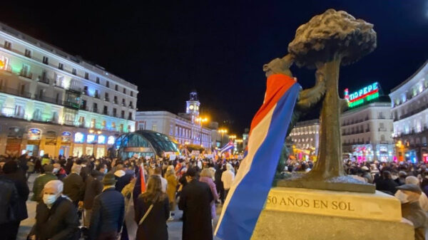 La Puerta del Sol ha acogido este lunes a más de 300 cubanos, según cifras de Policía Nacional, que se han concentrado en apoyo a la gran marcha cívica convocada para esta...