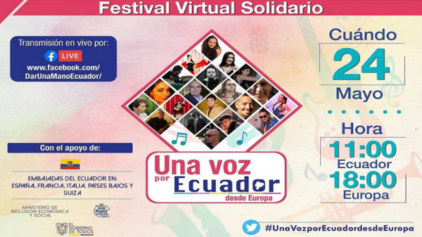 Una veintena de músicos ecuatorianos residentes en España, Francia, Italia, Países Bajos y Suiza participan este domingo en el Festival Virtual Solidario ‘Una voz por Ecuador desde Europa’, cuyos beneficios serán destinados...