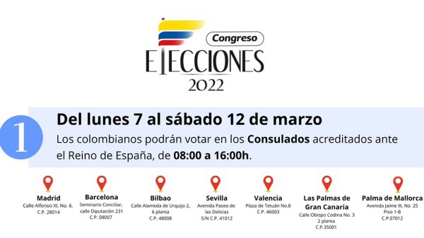 Madrid.- En los consulados y embajada de Colombia en España, hay inscritos 105.030 colombianos que podrán votar en las próximas elecciones legislativas que se...