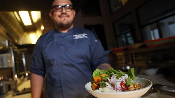 El peruano Frank Ponce, chef de La Mar en Doha, muestra una de las propuestas de la cebichería peruana de Gastón Acurio que se encuentra en el Hotel Intercontinental de la capital...