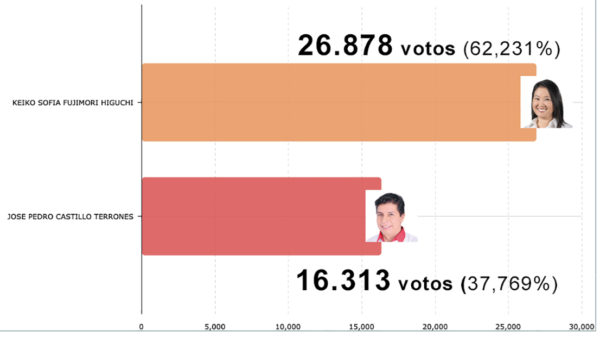 La candidata de Fuerza Popular a la presidencia de Perú, Keiko Fujimori, ha presentado acciones de nulidad en 802 mesas electorales en las que su formación ha hallado “irregularidades”, las cuales representan...